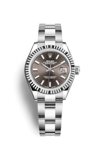 Lady-Datejust 28 Stainless Steel Fluted / Grey - Roman / Oyster